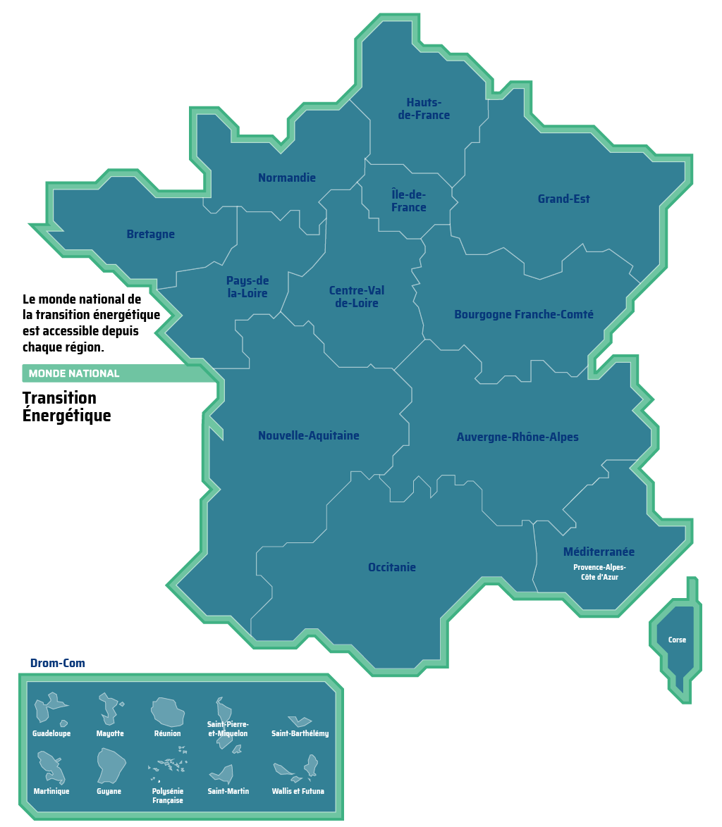 Depuis le planisphère, naviguez entre les différents mondes (régions et national) à la découverte des métiers près de chez vous.